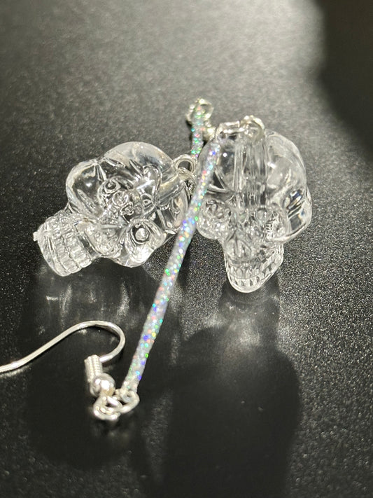 Regular price $15.00 USDRegular priceUnit price / perSale price $15.00 USDSkull Dangle Earrings: Hand-Crafted Skull Dangle Earrings with Clear Skull Charms — Gothic Halloween Jewelry