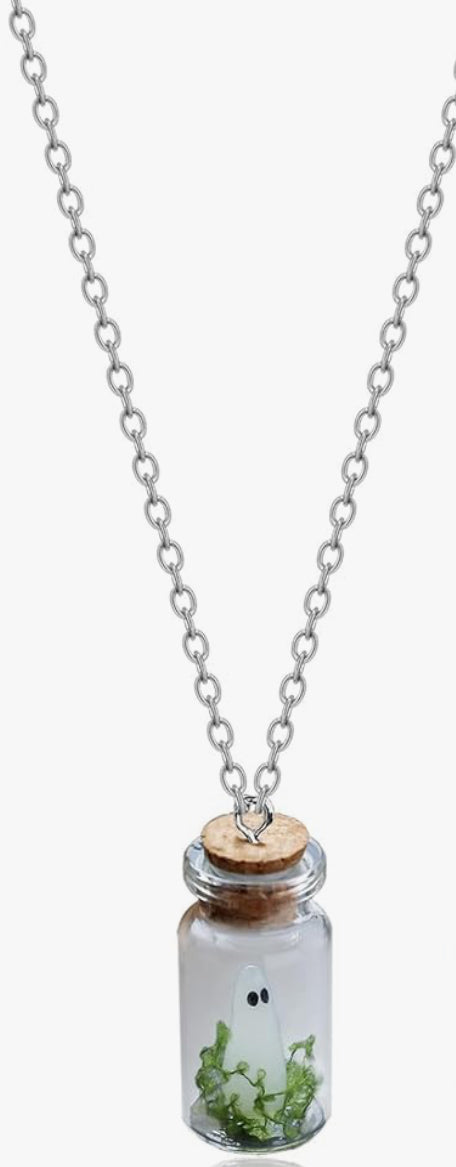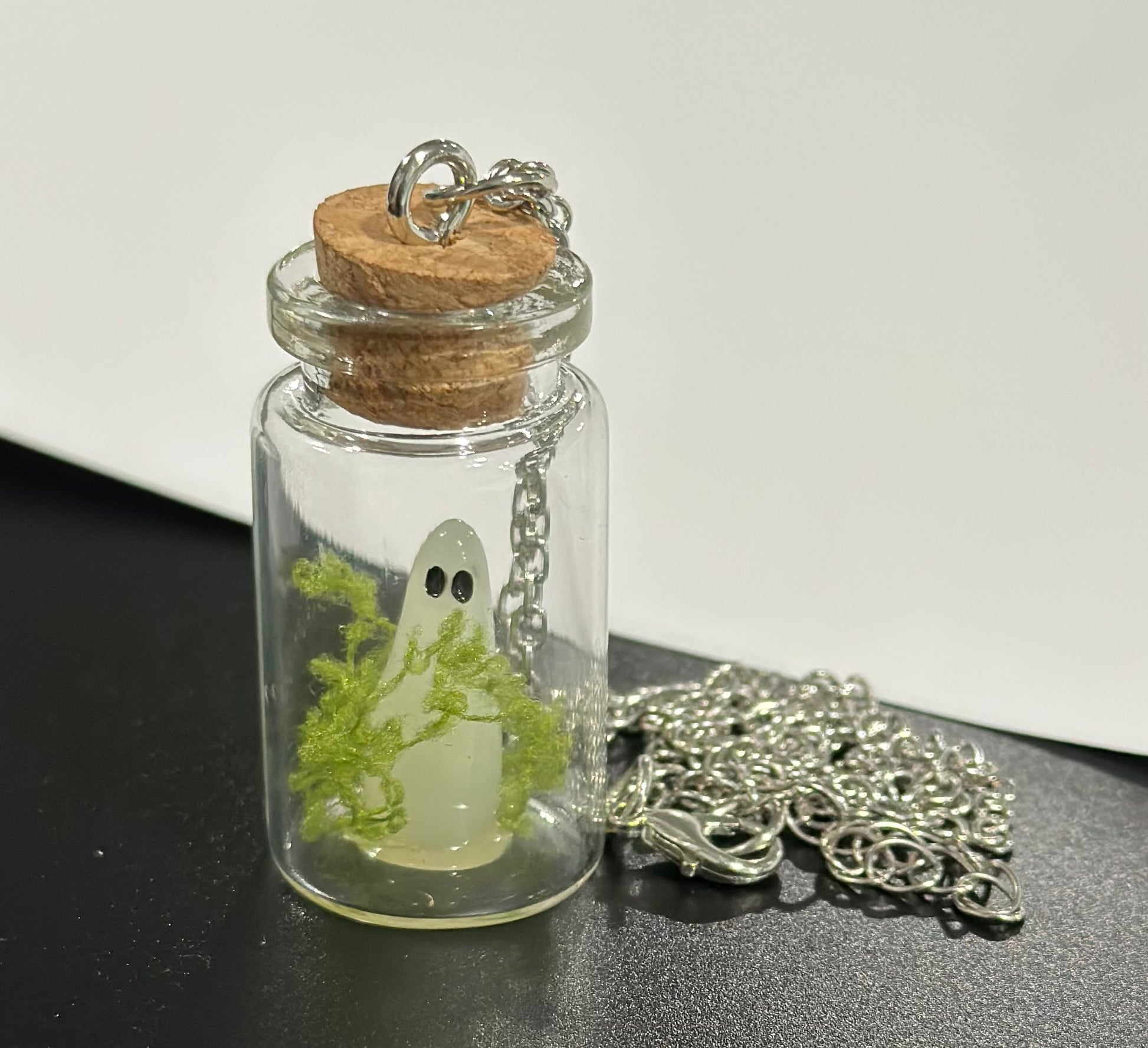 Glows-in-the-Dark Ghost in a Bottle Necklace – Handmade Halloween Pendant, Adjustable Dainty Ghost Charm