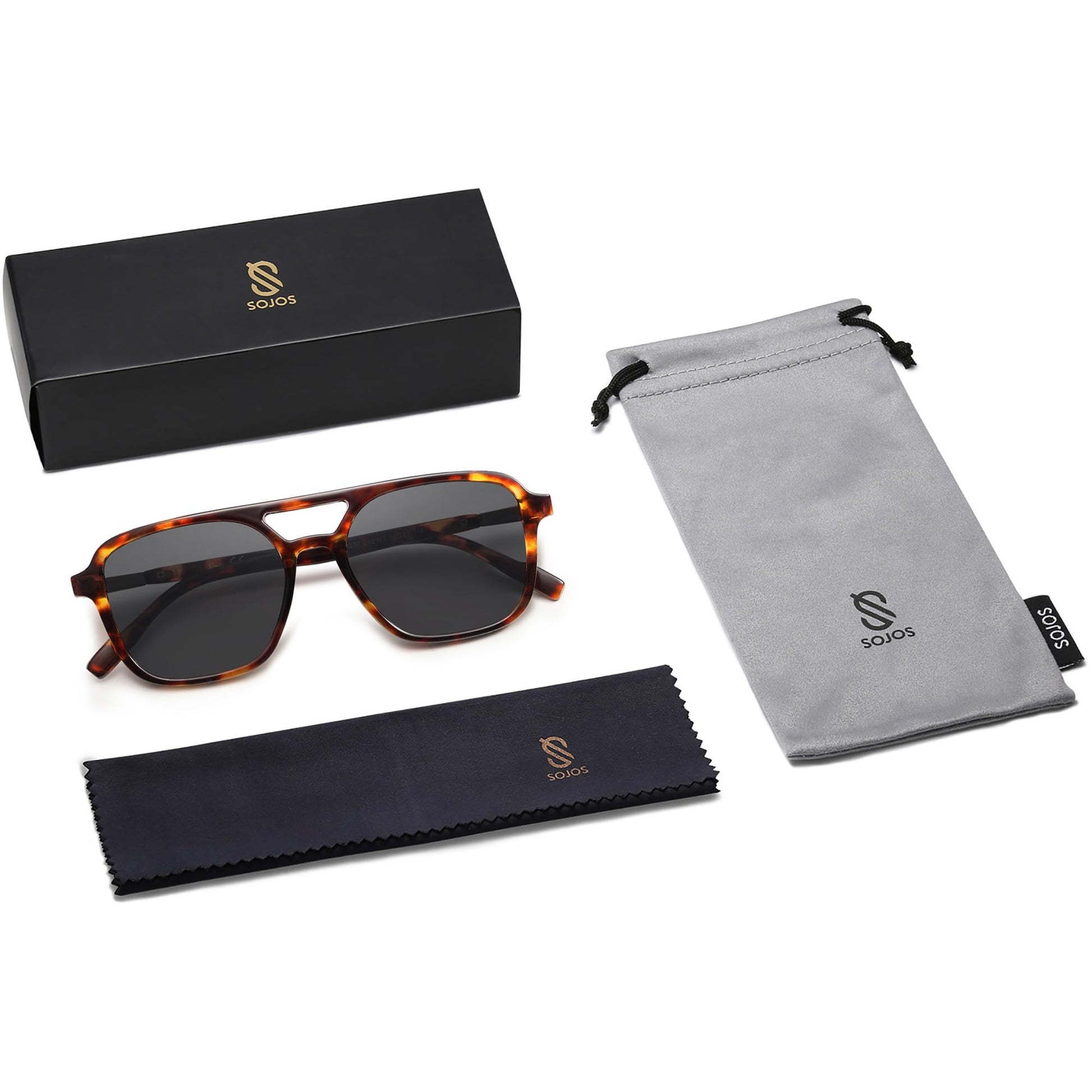 SOJOS Retro Aviator Sunglasses for Women Men,Trendy Rectangle Womens Mens Shades Sun Glasses SJ2202